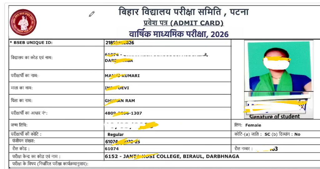 Bihar Board Inter Admit Card 2026 DownloadCheck Below