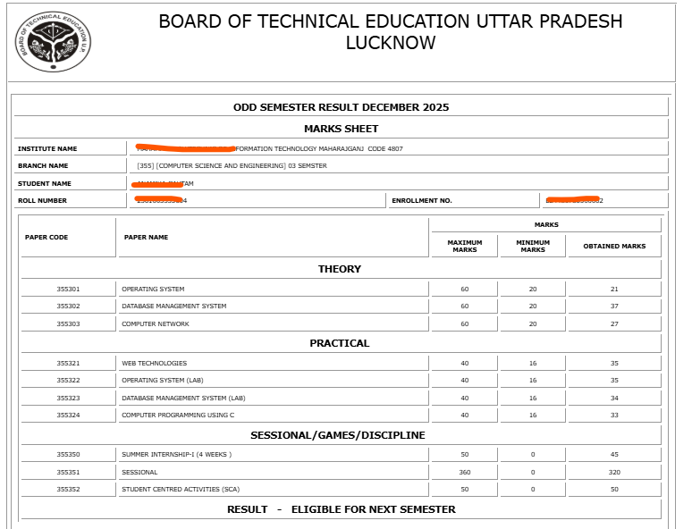 - रिजल्ट पोर्टल → result.bteexam.com या result.bteupexam.in