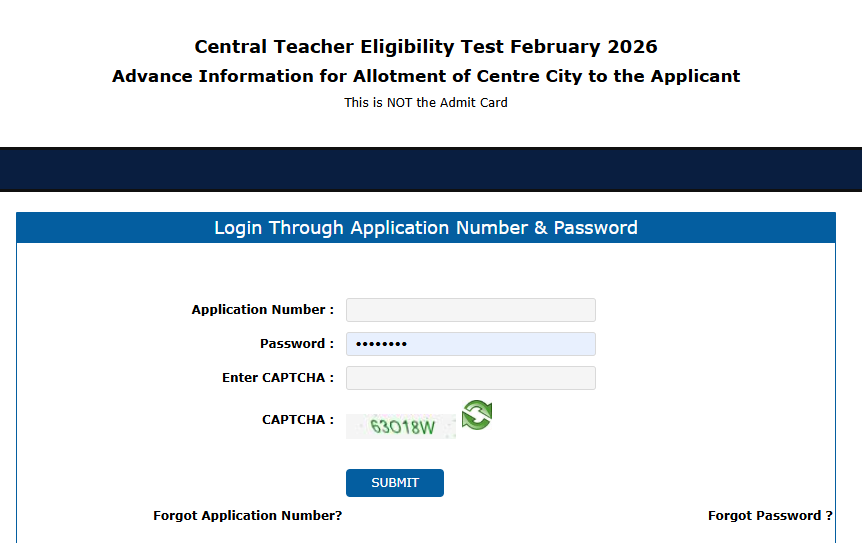 - होमपेज पर “City Intimation Slip for CTET February 2026” या “Download Pre-Admit Card/City Slip” वाला लिंक ढूंढें।