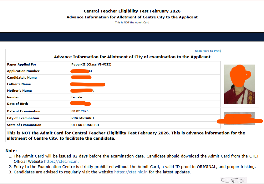 | CTET Admit Card 2026 Download link | Click Here |