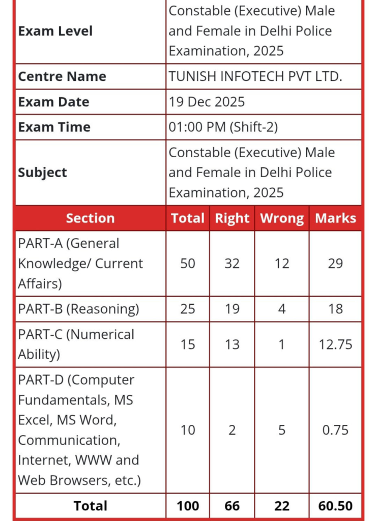 | Delhi Police Answer Key 2026 Pdf download : | Link 1 | Scorecard |