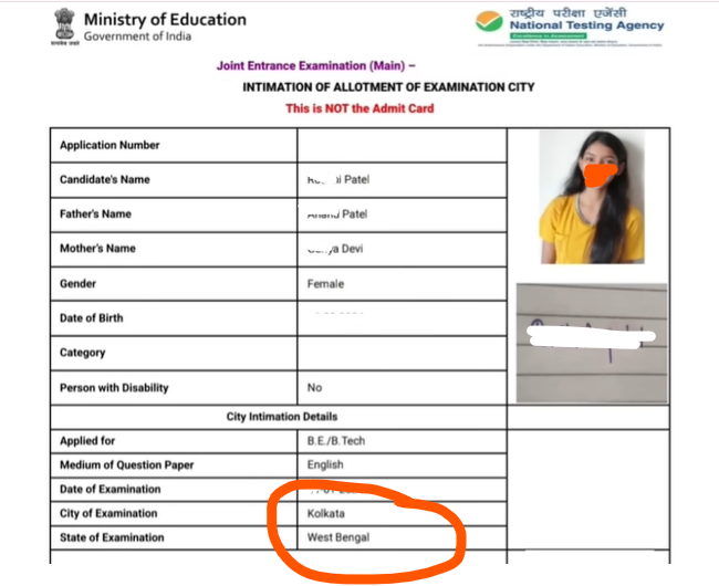 - आपकी सिटी स्लिप स्क्रीन पर दिख जाएगी – इसमें आपका नाम, एप्लीकेशन नंबर, allot शहर और एग्जाम डेट होगी।