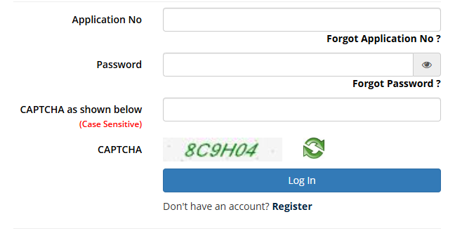 - अपना एप्लीकेशन नंबर और डेट ऑफ बर्थ (या पासवर्ड) डालें।