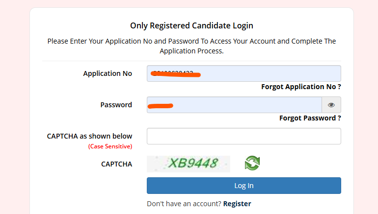 - लॉगिन विंडो खुलेगी। यहां अपना एप्लीकेशन नंबर, डेट ऑफ बर्थ या पासवर्ड और सिक्योरिटी पिन डालें।