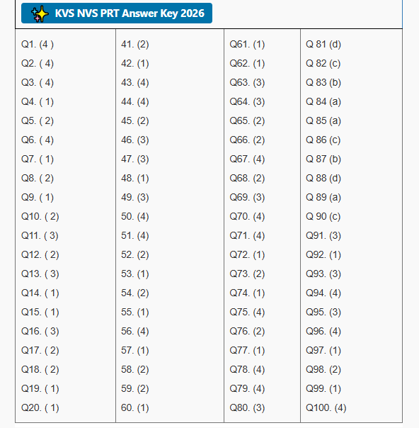दोस्तों, अगर आपने हाल ही में केन्द्रीय विद्यालय संगठन (KVS) या नवोदय विद्यालय समिति (NVS) की टियर-1 परीक्षा दी है (जो 10 और 11 जनवरी 2026 को आयोजित हुई), तो यह लेख आपके लिए बहुत खास है! परीक्षा खत्म होते ही सबसे पहले जो चीज हर उम्मीदवार के मन में आती है, वो है – “मेरा पेपर कैसा गया? कितने नंबर आएंगे?” और इसका सबसे सटीक जवाब देती है आंसर की।