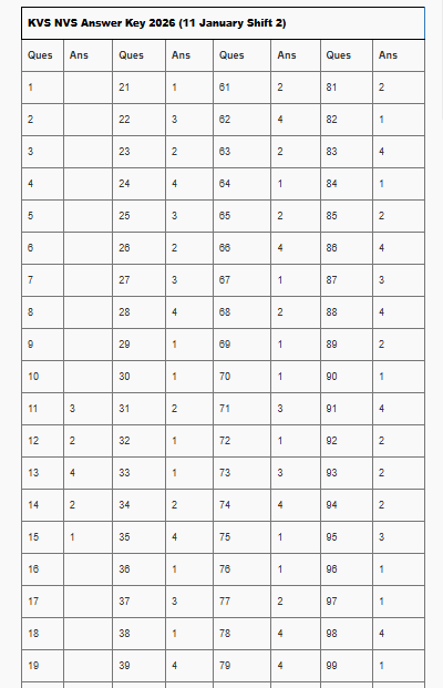 - KVS और NVS टियर-1 परीक्षा 10-11 जनवरी 2026 को दो शिफ्ट में हुई।