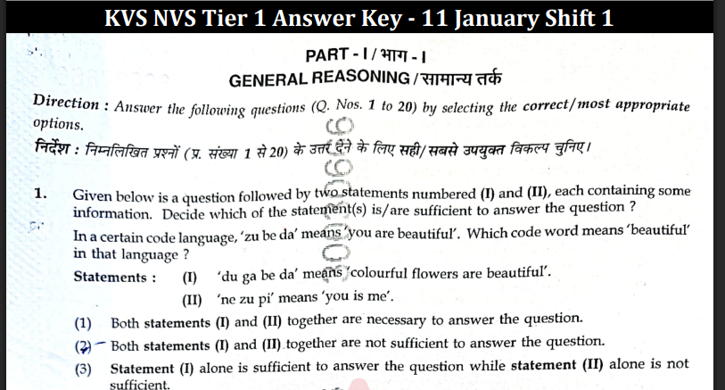 | NVS KVS Answer Key Tier 1 Pdf डाउनलोड करें : | Link 1 | Link 2 |