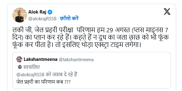 राजस्थान कर्मचारी चयन बोर्ड (RSMSSB) के अनुसार, जेल प्रहरी रिजल्ट 2025 को 29 अगस्त 2025 को आधिकारिक वेबसाइट rsmssb.rajasthan.gov.in पर जारी करने के लिए आयोग के अधिकारी आलोक राज ने यह जानकारी दी है और यह भी बताया है कि 7 दिन पहले और 7 दिन बाद में भी यह रिजल्ट जारी हो सकता है।