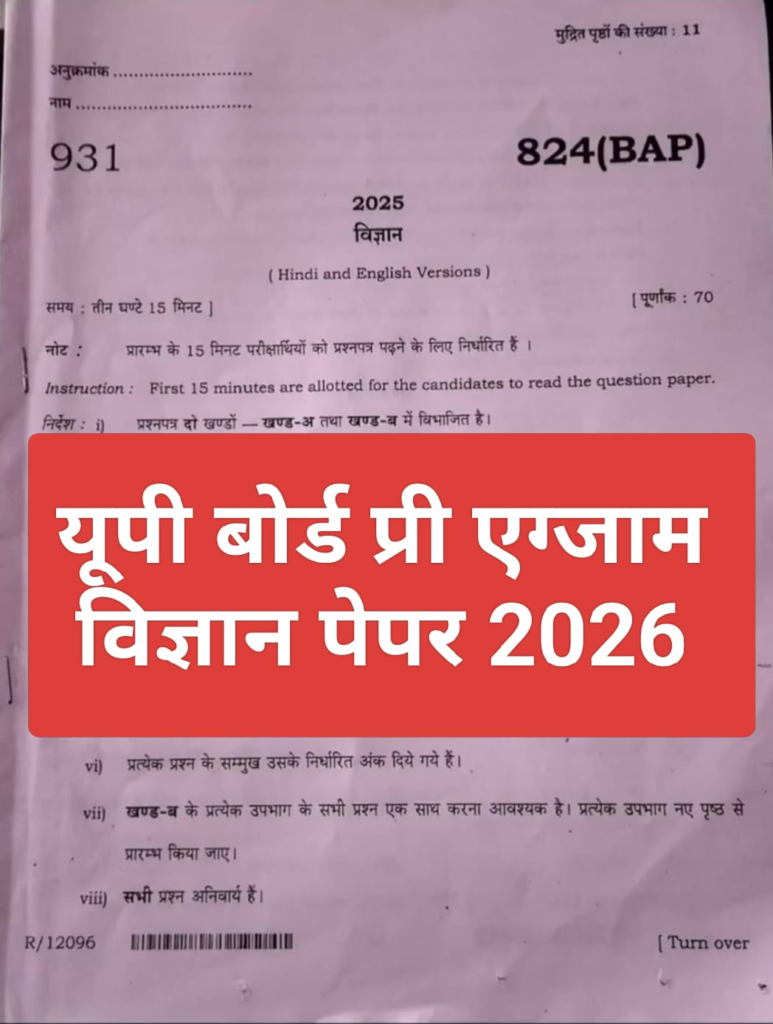 | UP Board Pre Exam 2026 Paper Pdf download : | English | Science |